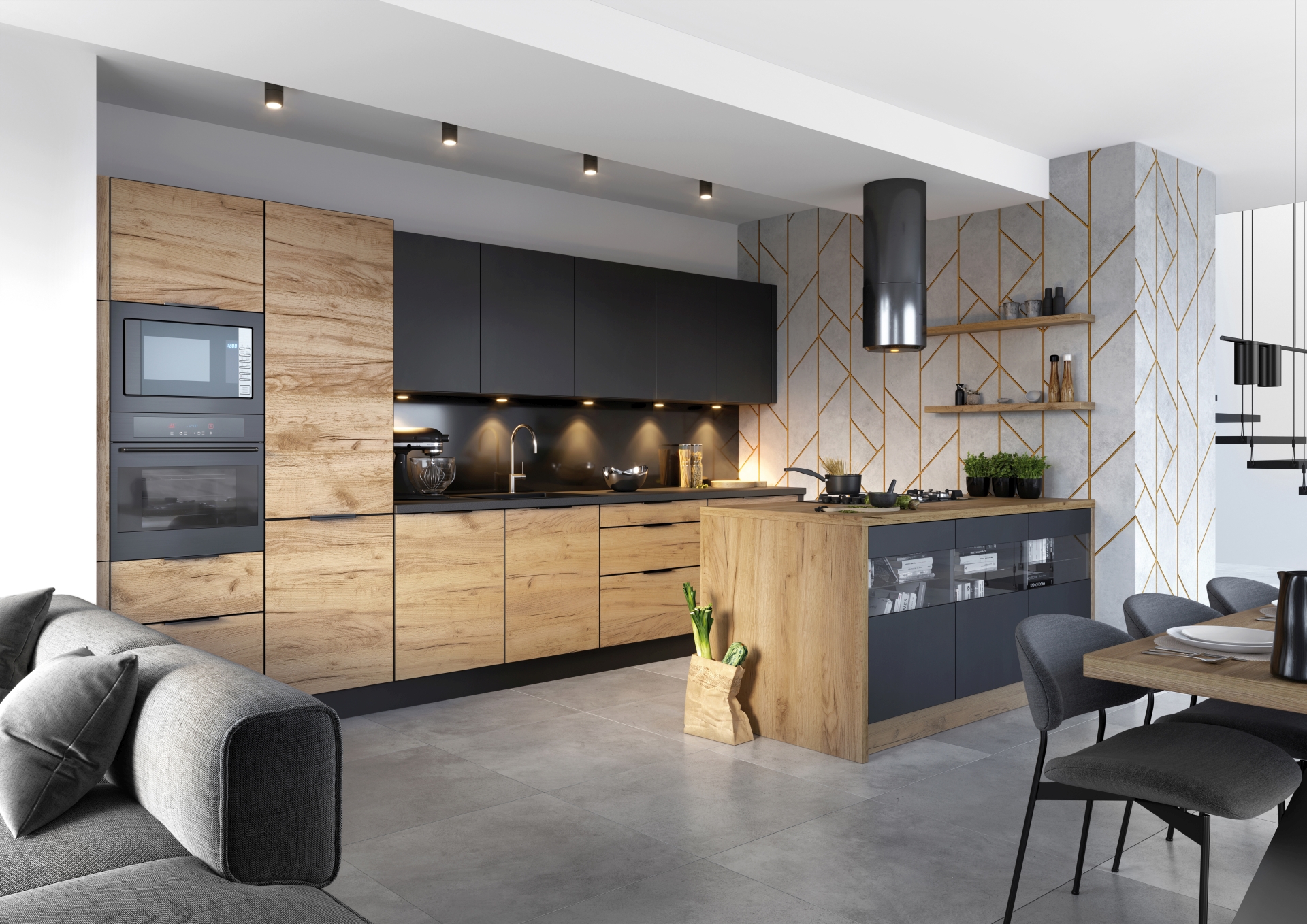 Szkło nie tylko jest szykowne i reprezentacyjne, ale podobnie jak dekory drewna, jest uniwersalne i ma ponadczasowy charakter. Prosta kuchnia w wiejskim stylu, klasyczna w stylistyce dyskretnej elegancji czy nowoczesna w industrialnym klimacie – w każdej z tych aranżacji szkło doskonale pasuje i będzie fantastycznym ozdobnikiem zabudowy meblowej. To materiał, który bardzo dobrze komponuje się z pozostałymi elementami wystroju wnętrza, dlatego można go dowolnie łączyć z drewnem, kamieniem czy powierzchniami lakierowanymi, zarówno w wykończeniu matowym jak i wysokim połysku.